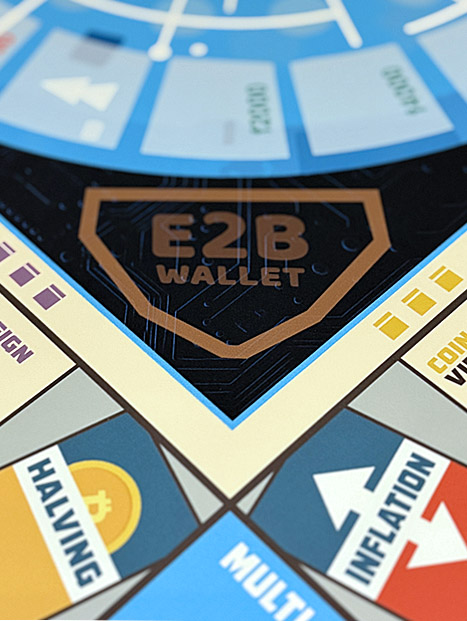The FIAT cash is pretty simple, you either earn it or the bank gets it – we all now how that feels! The Bitcoin in the game is held by players and there’s a Multi-sig Wallet that builds up a stash. Land on the Multi-sig square, and you hold the keys! Grab the whole bag of Sats!
